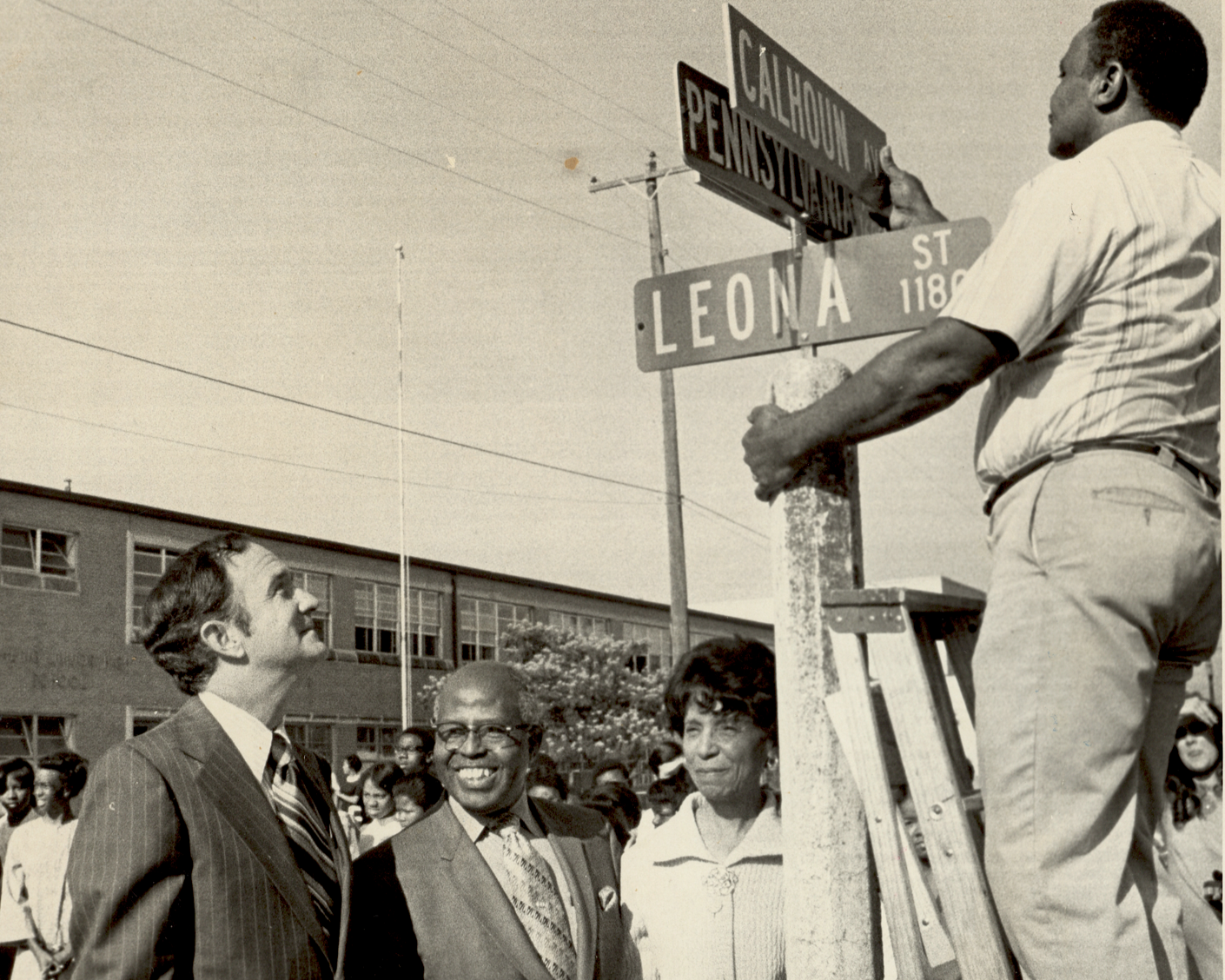 T.C. and Thelma at the renaming of Pennsylvania Avenue, in front of Kealing Middle School, after Mr. Calhoun (Courtesy of Pat Calhoun)