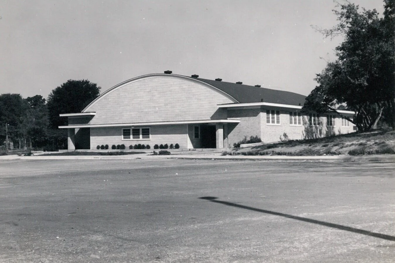 Throughout 1943, thousands of African American servicemen utilized Rosewood Park for sports, dances, socials, picnics, dinners, and sing-alongs. It became clear that they were in need of additional space to accommodate the magnitude of people taking part in wartime leisure. A recreation building designed by architect J. Roy White (1907–1985) opened at Rosewood Park on April 10, 1944 and served as an auditorium and gymnasium originally operated by the USO.