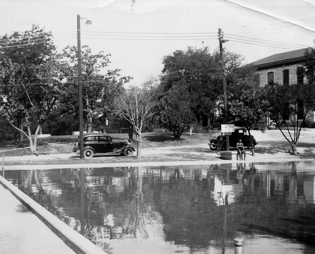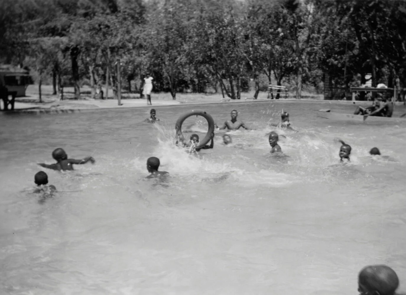 Children playing in Rosewood pool, 1938, (Austin History Center, Austin Public Library).